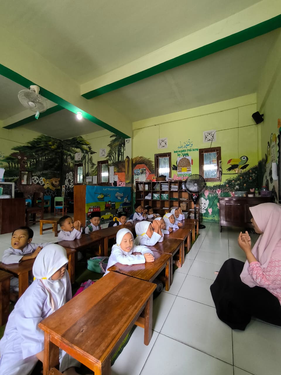 Di KB Hasyim Asy’ari ini, praktek sholat selalu kami lakukan di hari Jum’at. Hari Jum’at khusus untuk melakukan praktek ibadah baik praktek yang sering dilakukan untuk diri sendiri seperti sholat, wirid dan berdoa ataupun di masyarakat seperti tahlil. Kami berharap dengan nilai-nilai yang kami tanamkan di sekolah ini dapat terus menjadi kebiasaan baik hingga mereka dewasa. Dan bahwa hidup bermasyarakat sangatlah penting. Berdoa dan tahlil bersama di masyarakat akan menumbuhkan kerukunan dan kepedulian antarsesama. Kalau mencontohkan sholat kepada anak-anak dianggap percuma sebab akan “dicuekin” karena masanya masih bermain, anggapan itu tidak sepenuhnya benar. Kami percaya kebaikan walaupun sedikit tidak akan sia-sia. Justru dengan membentuk habit yang baik untuk anak usia dini, anak-anak akan semakin siap dan kuat untuk melangkah ke depan. Apalagi yang diajarkan berlandaskan ketuhanan dan keagamaan.